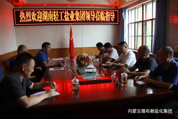 考察组一行在深入盐湖各生产作业点、放运现场和精盐分厂生产车间等区域参观考察后,在公司二楼会议室进行了座谈。党委书记、董事长孙刚德主持座谈会,对李总一行的到来表示热烈欢迎,并表达了我方在食用盐方面的合作意愿,表示愿意采取多种合作模式,不拘一格的加强与对方的合作,以实现食用盐小包装量的增长,进一步降低生产成本,提高企业经济效益。总经理李奎锦介绍了雅盐发展历程、股权变更情况、资源状况、交通情况、产品品种、生产能力及公司运营情况、下一步发展计划等,同时就增进双方合作提出意见和建议。