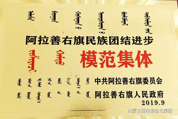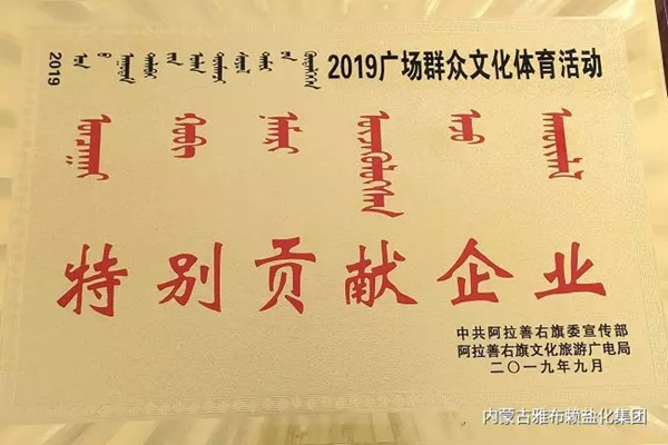 集团公司荣获“阿拉善右旗民族团结进步模范集体”、“2019年支持广场群众文化体育活动特别贡献企业”等荣誉称号