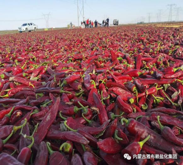 每年的9月,是甘肃河西地区和内蒙临河地区辣椒种植户的收获季,大面积的辣椒成熟后从田间地头归拢起来,集成一道道红艳艳的岭。这些定制的辣椒,小部分鲜椒被直接装车拉运至四川、山东等地深加工,大部分鲜椒会在种植地粗加工储存起来以待日后运输。这项庞大的采摘、集中、运输或就地加工的工程均要在1个月左右时间内完成,具有时间紧、任务重的特点。为了辣椒保鲜保质不褪色,盐便成了辣椒就地粗加工时必不可少的添加物。采摘后的辣椒不快速加工很容易脱水腐烂,此时需要及时将盐与辣椒混合保鲜,辣椒种植面积越大,采摘的效率越高,食品加工盐的大量及时供应就显得愈加关键,这对于生产销售辣酱盐的企业,无疑是一个不小的挑战。